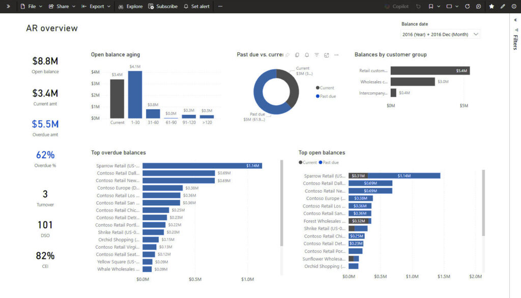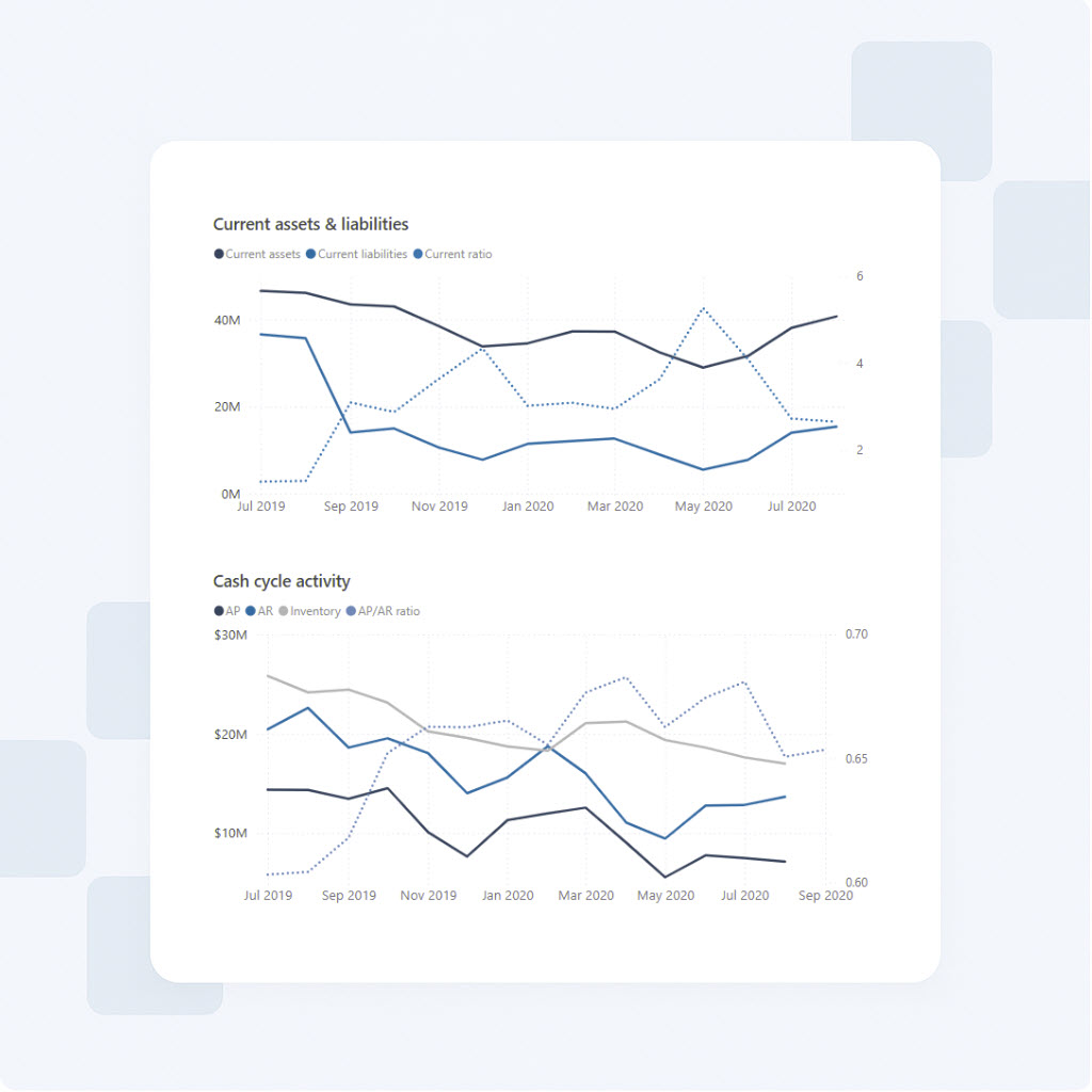 Use enterprise-grade Power BI dashboards designed specifically for Dynamics 365 Finance and Operations data models.
